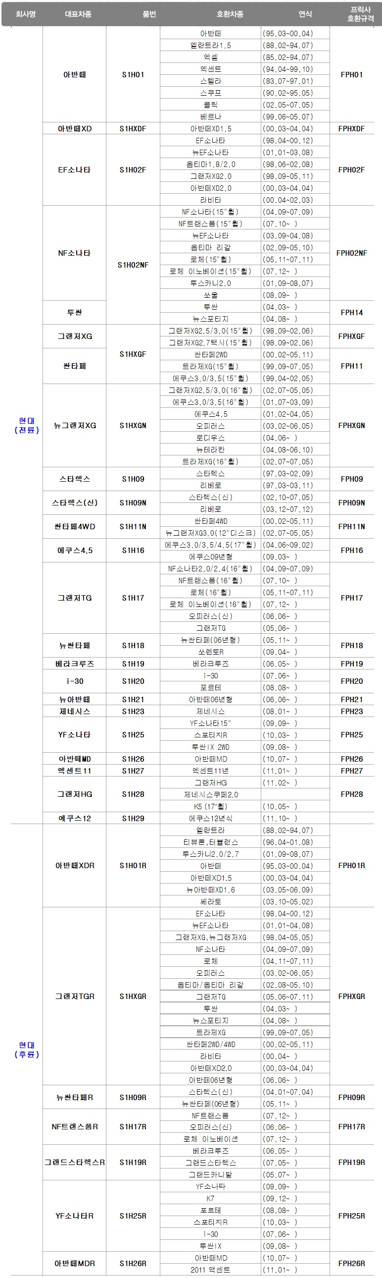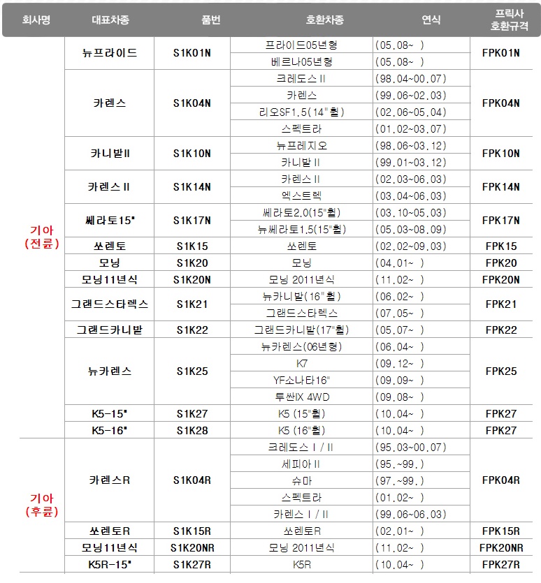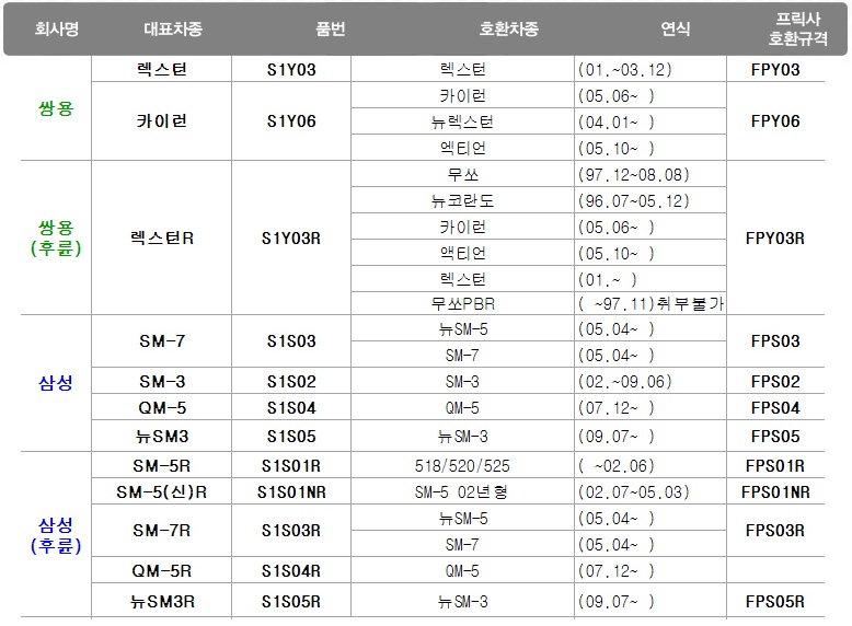 적용차종 상세페이지 참조